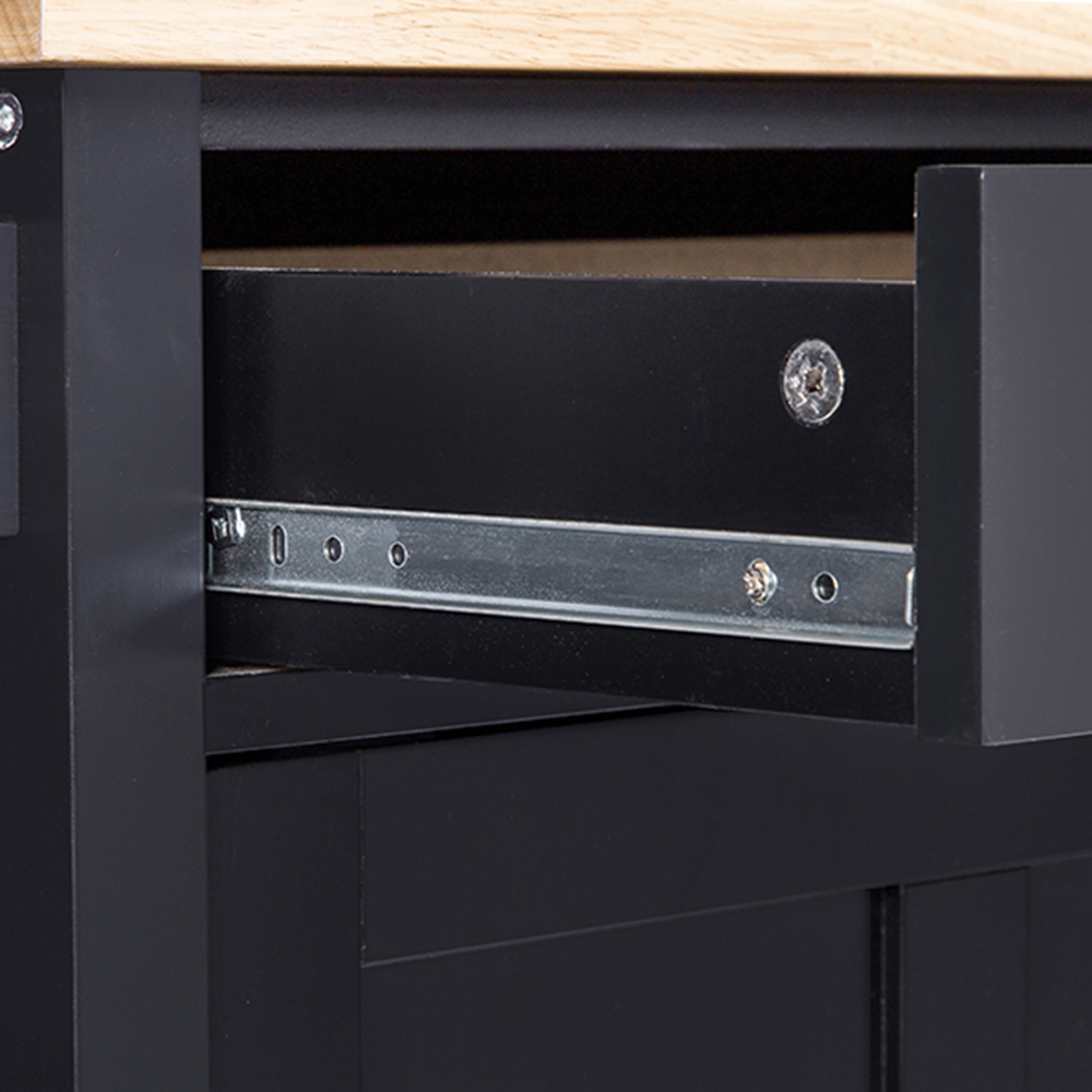 The Denver trolley features a well sized drawer on qaulity slider runners, tea towel holder, Open storage space and internal storage behind a hinged door.